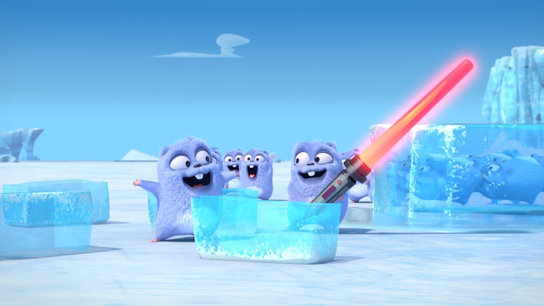 Die Lemminge haben die komplette Einrichtung der Hütte in eine lange Reihe von Domino-Steinen umfunktionert, die mit einigen Eisblöcken und einem Feuerwerk endet. Um endlich seine Ruhe zu haben, sabotiert Grizzy das Spiel der Lemminge. Eine Rakete schießt in den nahegelegenen Eisberg, von dem sich ein riesiger Brocken löst und die Hütte zerstört. Zum Glück findet Grizzy eine Maschine, die Eisblöcke erschaffen kann und baut sich ein Iglu.