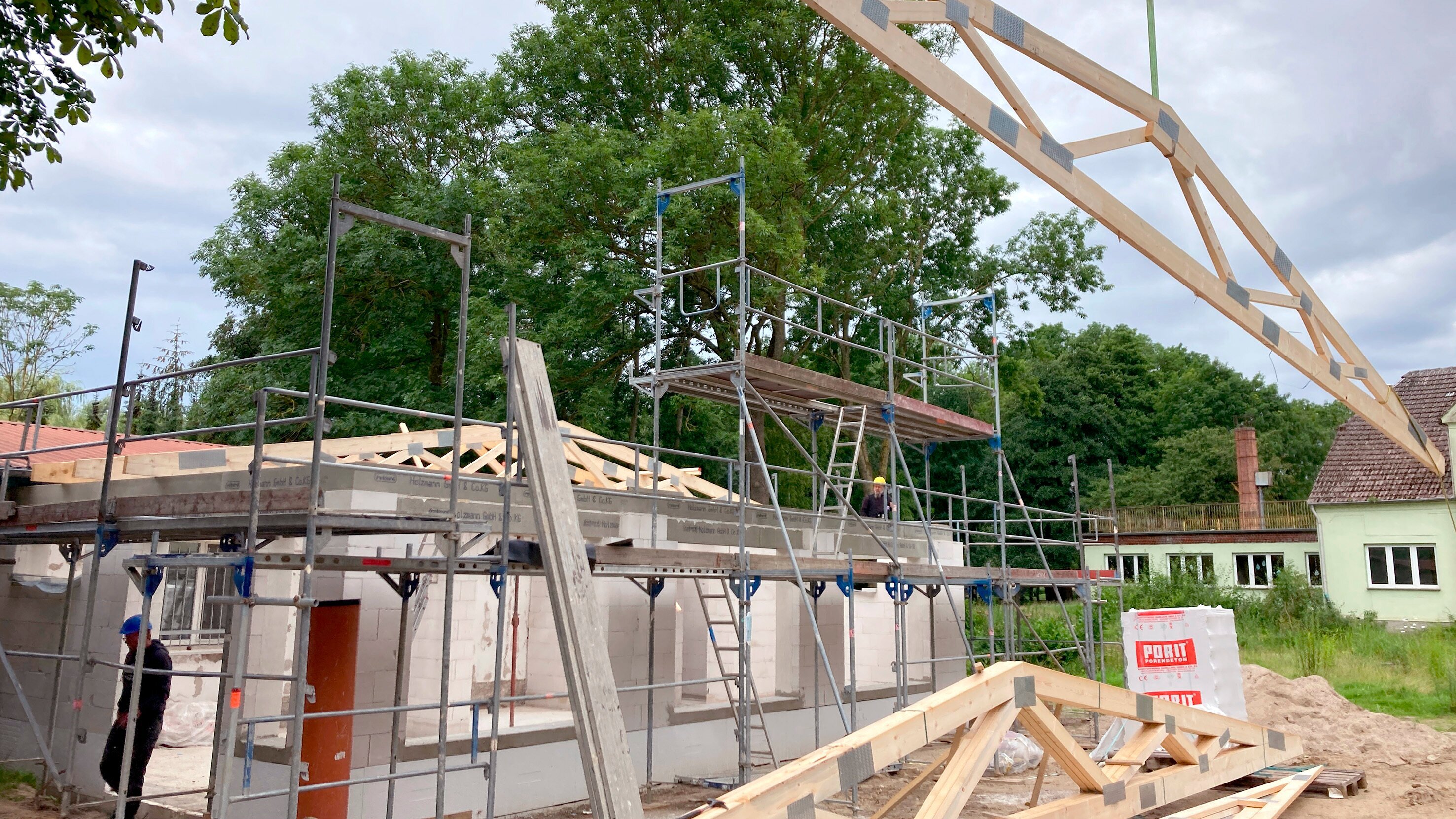 Der Dorfladen im mecklenburgischen Bernitt ist zu klein geworden. Ein Anbau muss her! Und das bei laufendem Geschäft. Wenn Verkäuferin Claudia morgens, eine halbe Stunde vor der regulären Öffnungszeit, die Tür des Bernitter Dorfladens aufschließt, duftet der ganze Laden schon nach Bäckerei. Und trotz der frühen Stunde wird zusammen mit Geld oder Brötchentüten der eine oder andere Scherz über die Theke gewechselt. Man kennt sich: Claudia weiß, dass die Rentnerin demnächst zur OP muss, wo sich der Klempnermeister den Daumen verstaucht hat und dass die Neuzugezogenen im Dorf bald Silberhochzeit feiern. Wer hier einkauft, in der Poststelle seine Pakete abgibt oder das immer frisch gekochte Mittagessen genießt, hat fast immer auch Zeit für einen kurzen Schwatz. Doch seit ein paar Wochen mischt sich mehr und mehr Stress in die ländliche Laden-Idylle: Direkt vor dem Fenster quietschen Bagger, werden Dachbalken vom Lkw abgeladen, es wird gehämmert und gebuddelt. Der liebenswerte Dorfladen im mecklenburgischen Bernitt braucht schon lange eine größere Fläche. Vor allem für die Kundschaft, die hier jeden Tag zum Mittagessen kommt, bietet der einzige Tisch am hintersten Ende des 80 Quadratmeter großen Geschäfts viel zu wenig Platz. Ein Anbau soll Abhilfe schaffen, aber das Geschäft muss während der Bauphase weitergehen. Eine Bewährungsprobe für alle: die Frauen im Laden, die treue Kundschaft – und die Bauarbeiter.