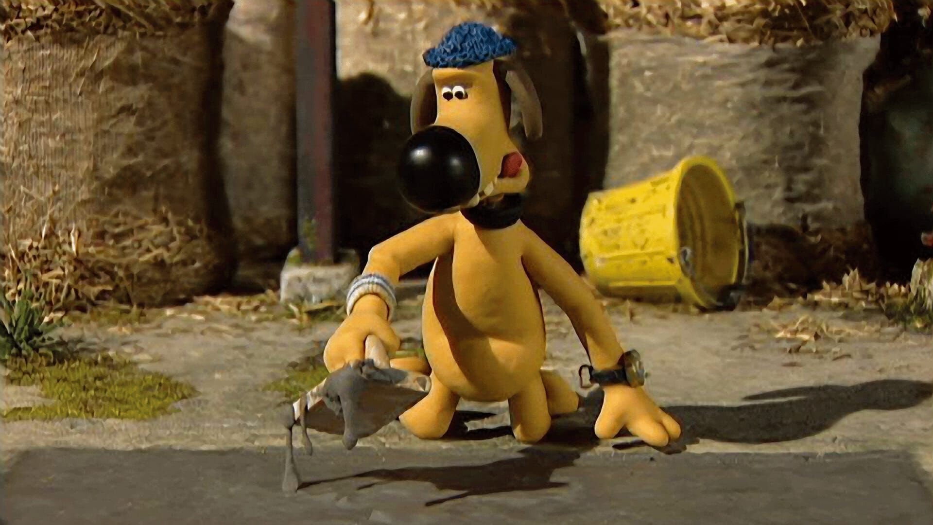 Der Farmer hat den Hof zementiert. Damit der Zement sauber trocknen kann, positioniert er Wachhund Bitzer, der seine Aufpasserrolle sehr ernst nimmt – leider erfolglos. Das Chaos ist perfekt, als Schaf Shirley im Zement stecken bleibt und eintrocknet. Shaun muss nun mit dem Presslufthammer ran und auch die anderen Schafe helfen Bitzer, den alten Zement-Zustand herzustellen, bevor der Farmer zurück ist. Und in der Tat: Bei seiner Rückkehr sieht der Farmer einen perfekt zementierten Hof ...