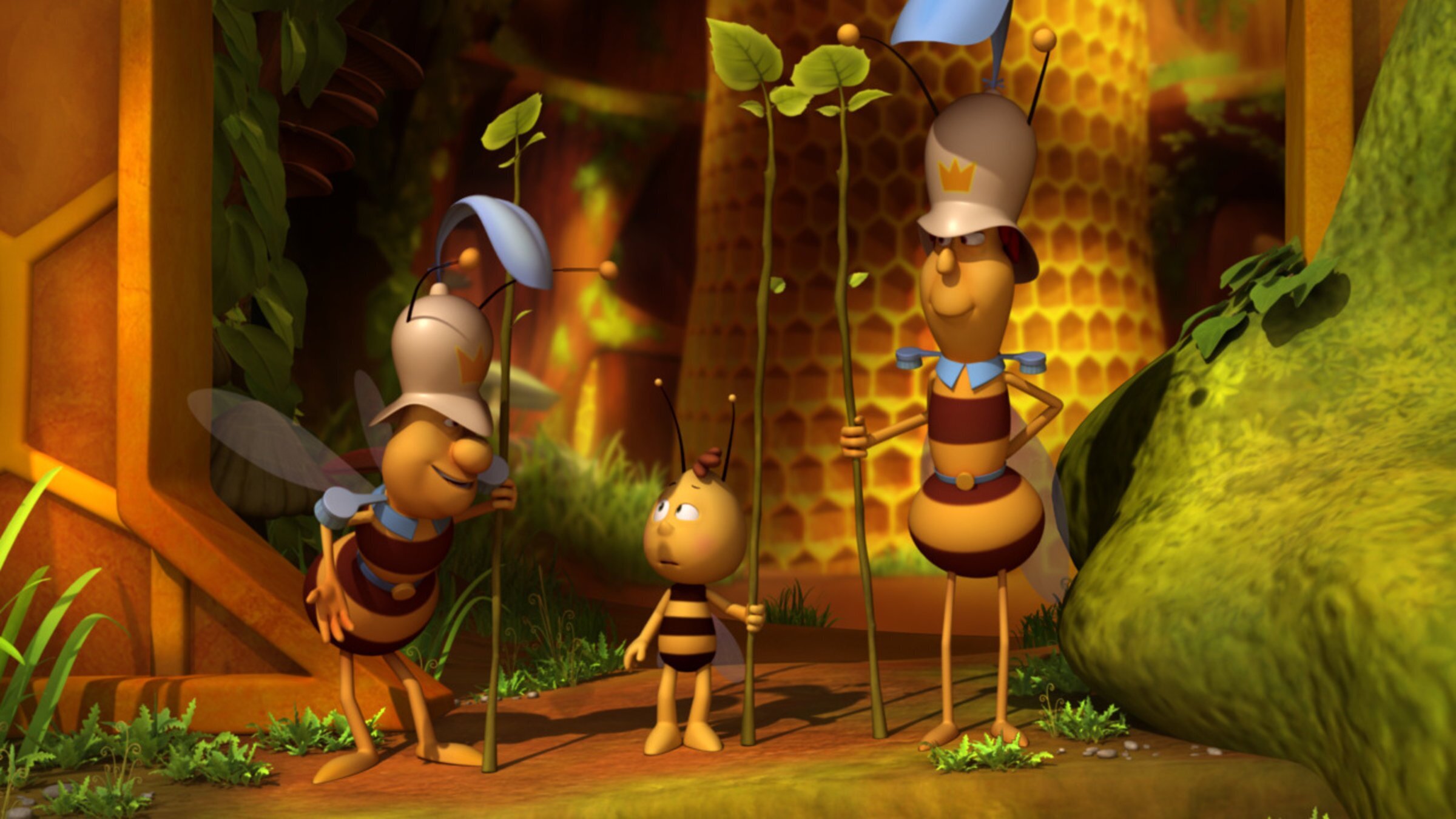 Bitte nicht zwicken!: Ben begegnet im Wald einem merkwürdigen Tier mit großen Zangen. Und vor lauter Aufregung vergisst er dort seine geliebte Mistkugel. Während Willi einem Tier mit furchteinflößenden Zangen lieber nicht begegnen will, fliegt Maja in den Wald, um Bens Mistkugel zu suchen. Natürlich will die neugierige Maja auch unbedingt das seltsame Tier kennenlernen. Das Zangentier ist der Ohrenkneifer Igor, und er ist nicht seltsam. Im Gegenteil! Gleich bei der ersten Begegnung braucht Maja die Hilfe von Igor und seinen Zangen. Der wachsame Willi: Er ist nicht ausgeschlafen, er vergisst seinen Helm, und er hat Schluckauf – Willis erster Tag als Wachbiene am Bienenstockeingang beginnt nicht gut. Ein Glück steht ihm seine beste Freundin Maja zur Seite. Denn Willi bekommt einiges zu tun: Zuerst will eine Sammelbiene verdorbenen Pollen in den Bienenstock bringen, dann tauchen die unberechenbaren Wespen am Eingang auf, und zu allem Überfluss macht auch noch der pingelige Richter Bienenwachs eine besonders strenge Bienenstockkontrolle. Ob Willis erster Tag als Wachbiene besser endet, als er begonnen hat?